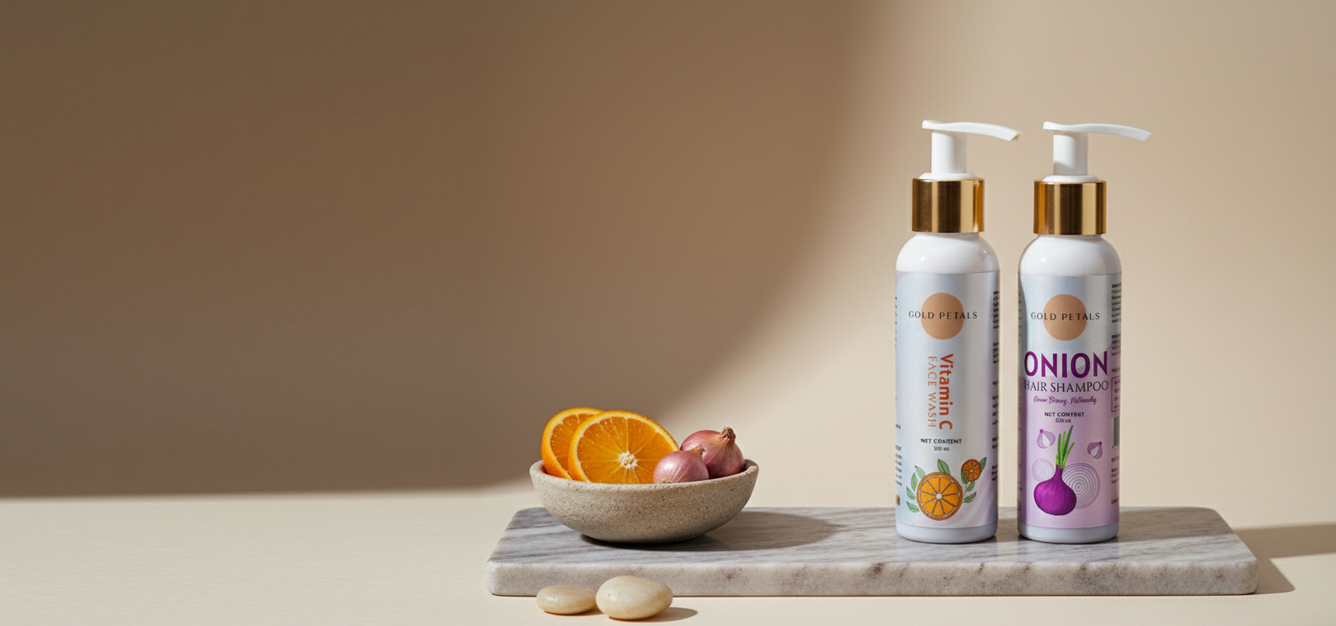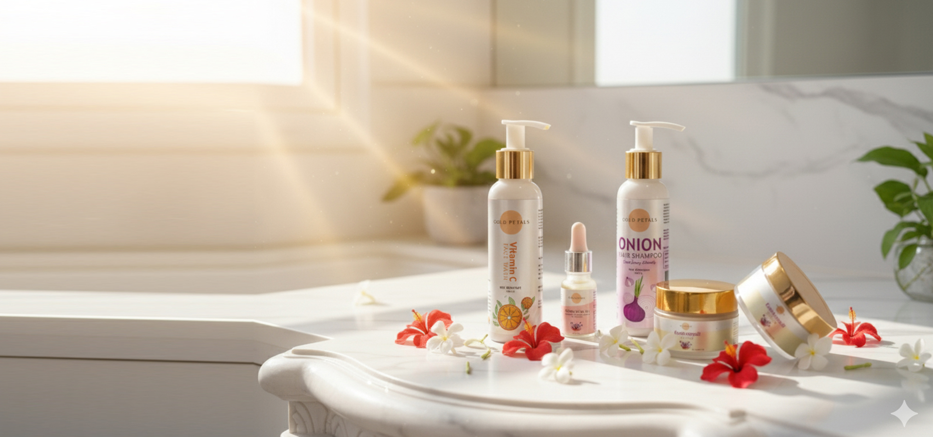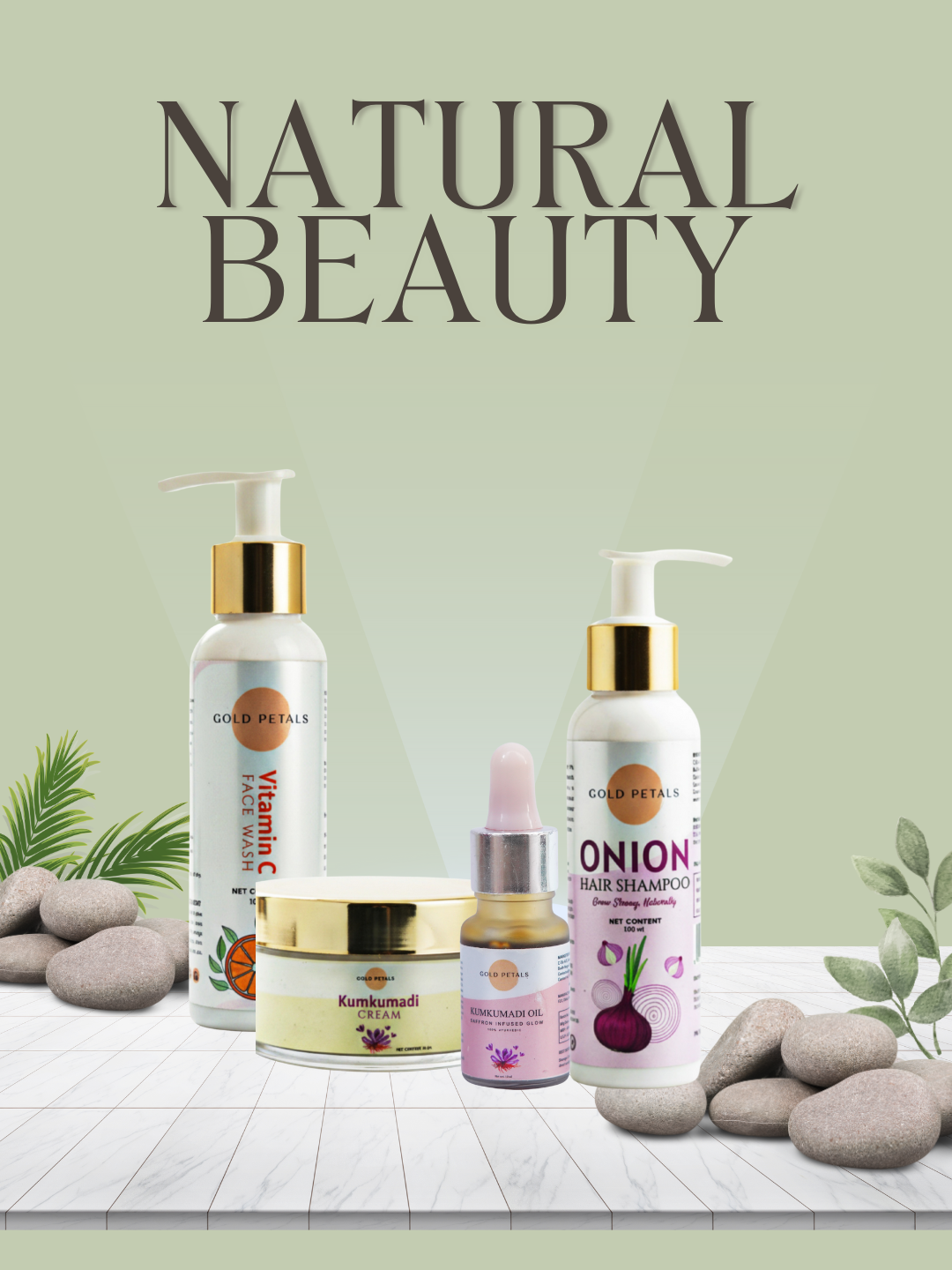 Glow naturally with Gold Petals – where skincare meets daily beauty. Our essentials are thoughtfully crafted to enhance your everyday look with minimal effort and maximum impact.