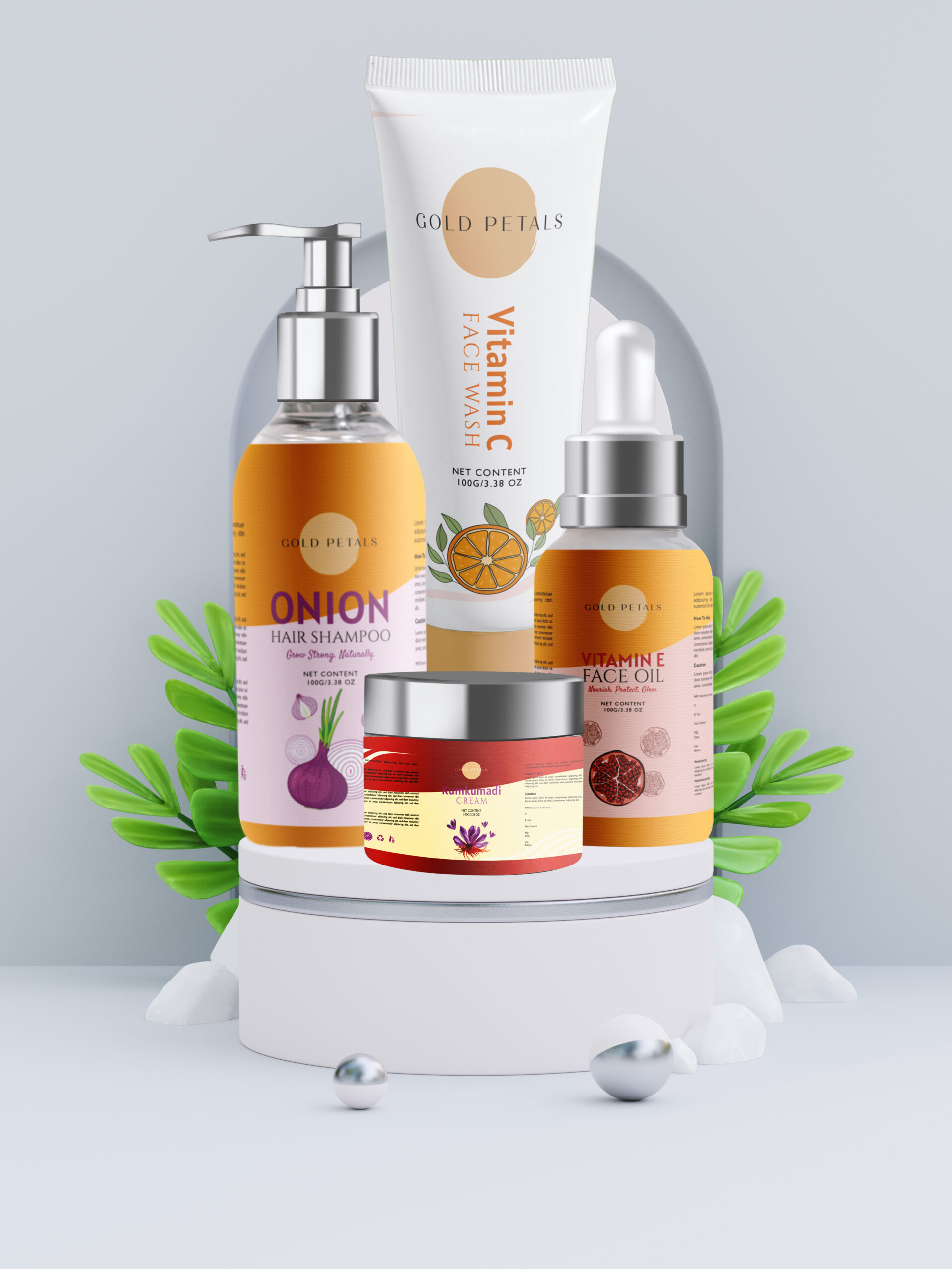 At Gold Petals, we believe that true beauty is a reflection of purity, confidence, and care. Our journey began with a simple yet powerful mission — to create skincare and beauty essentials that are not only effective, but also gentle, clean, and crafted with love.